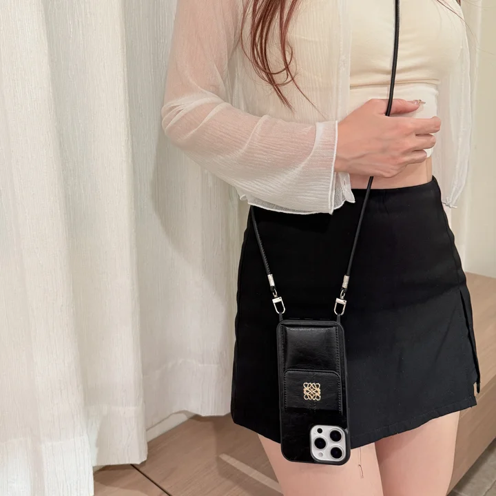 ロエベ iPhone17/17Pro/17Air/17ProMax ケース 本革 牛革 スマホショルダー ストラップ付き LOEWE iPhone17Pro/17ProMax 携帯ケース カード収納付き 斜めがけ ハイブランド iPhone16Pro/16 ケース おしゃれ 高級感 レディース ブラック iPhone15/14Pro ケース